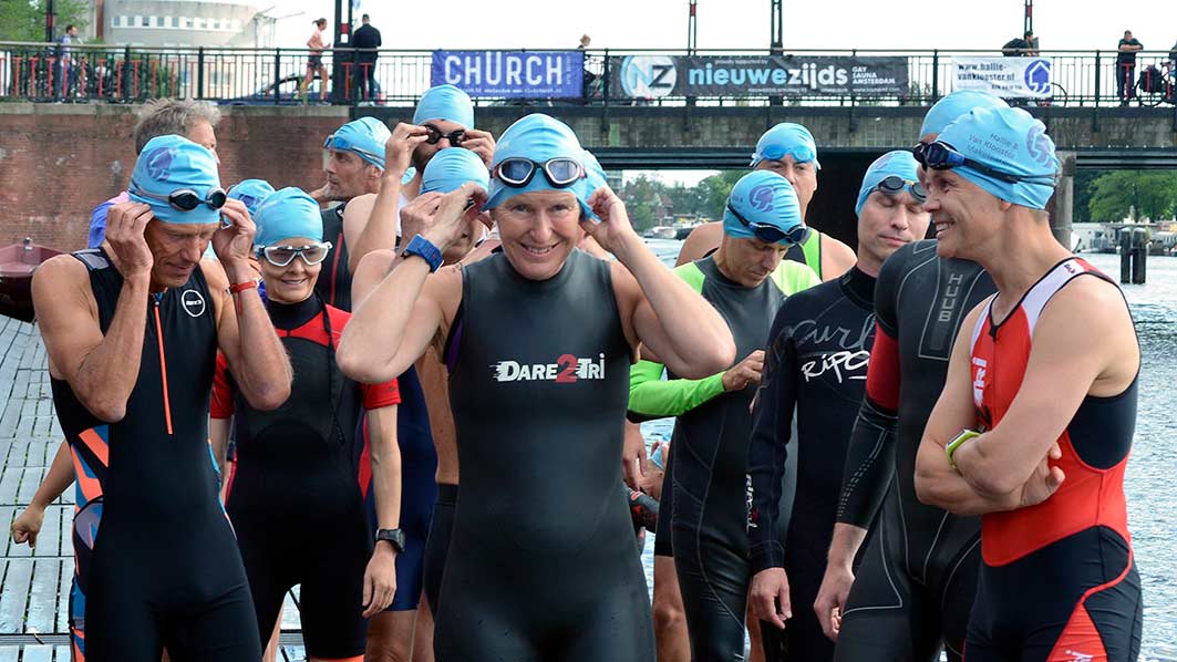 Zevenhonderdvijftig meter zwemmen, daarna 20 km fietsen, hierna zouden de triatleten aansluiten voor de 5 km bij de Pride Run.
